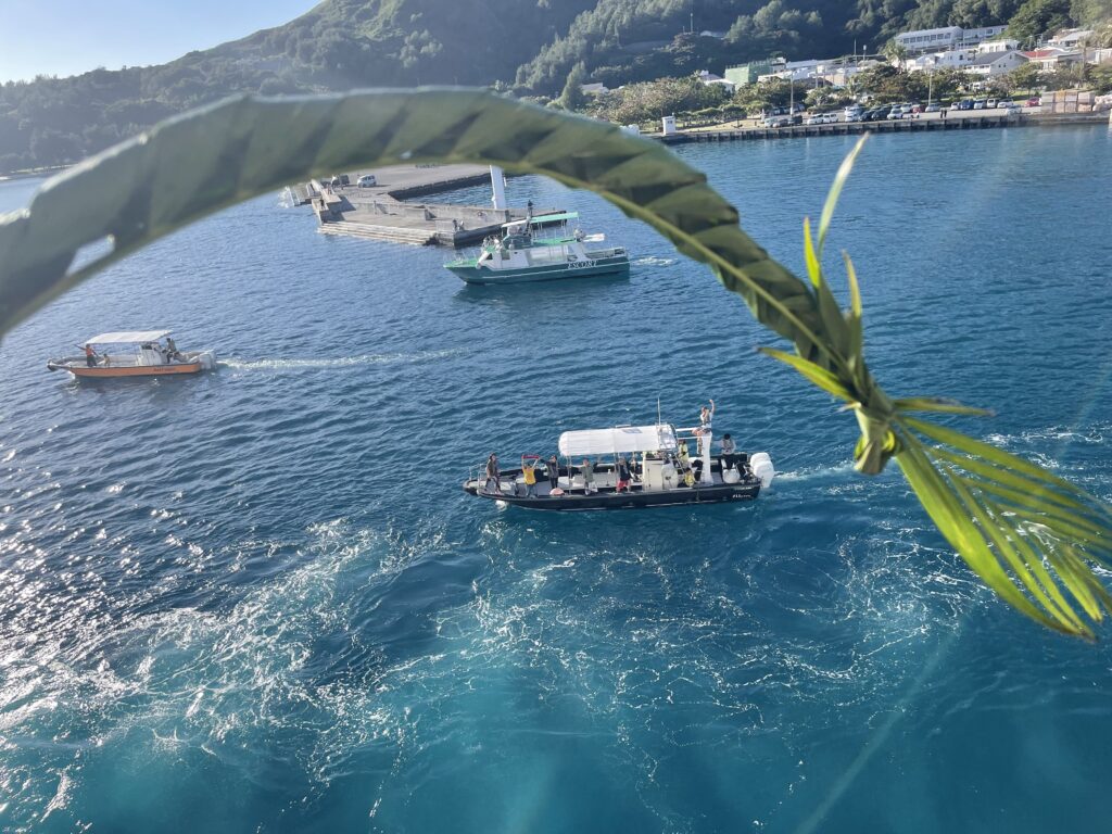 島を去る人に向けて、「いってらっしゃい」の気持ちを込めて渡すもの。そしてレイを受け取った人は、出港する船の上から海へと投げます。