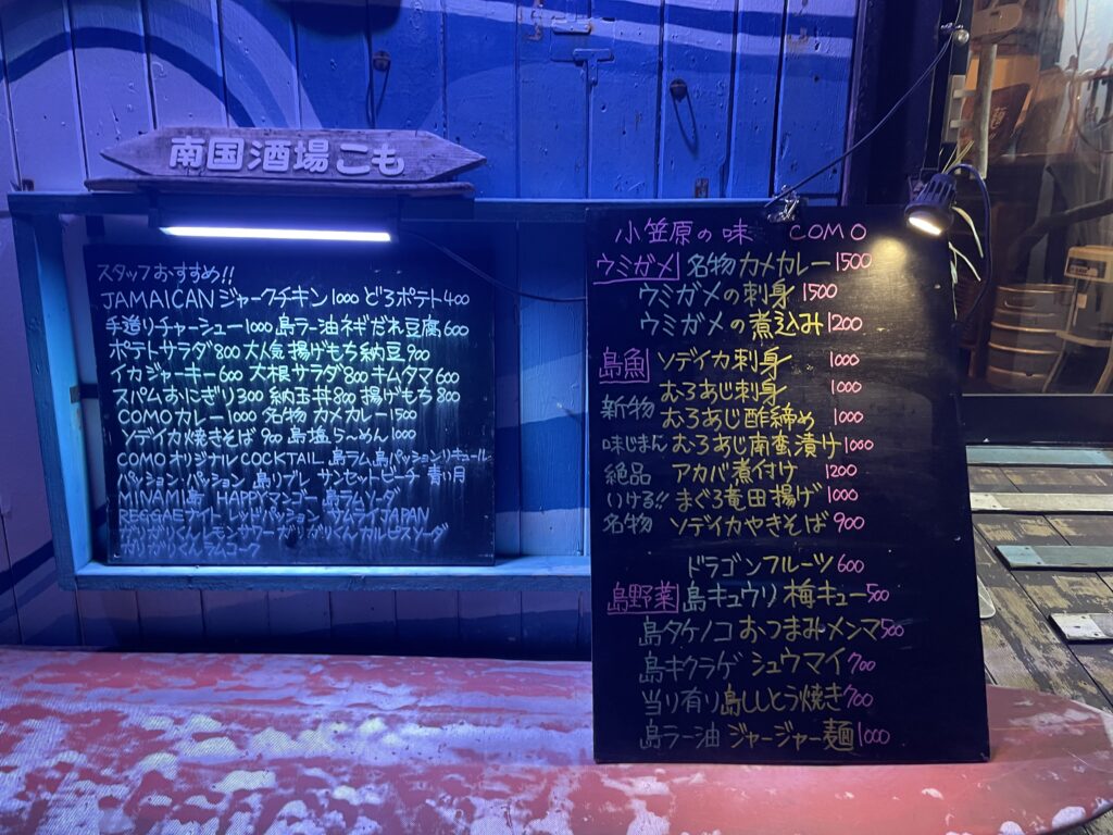 小笠原では、いくつかの居酒屋や食堂でウミガメ料理を提供しています。
