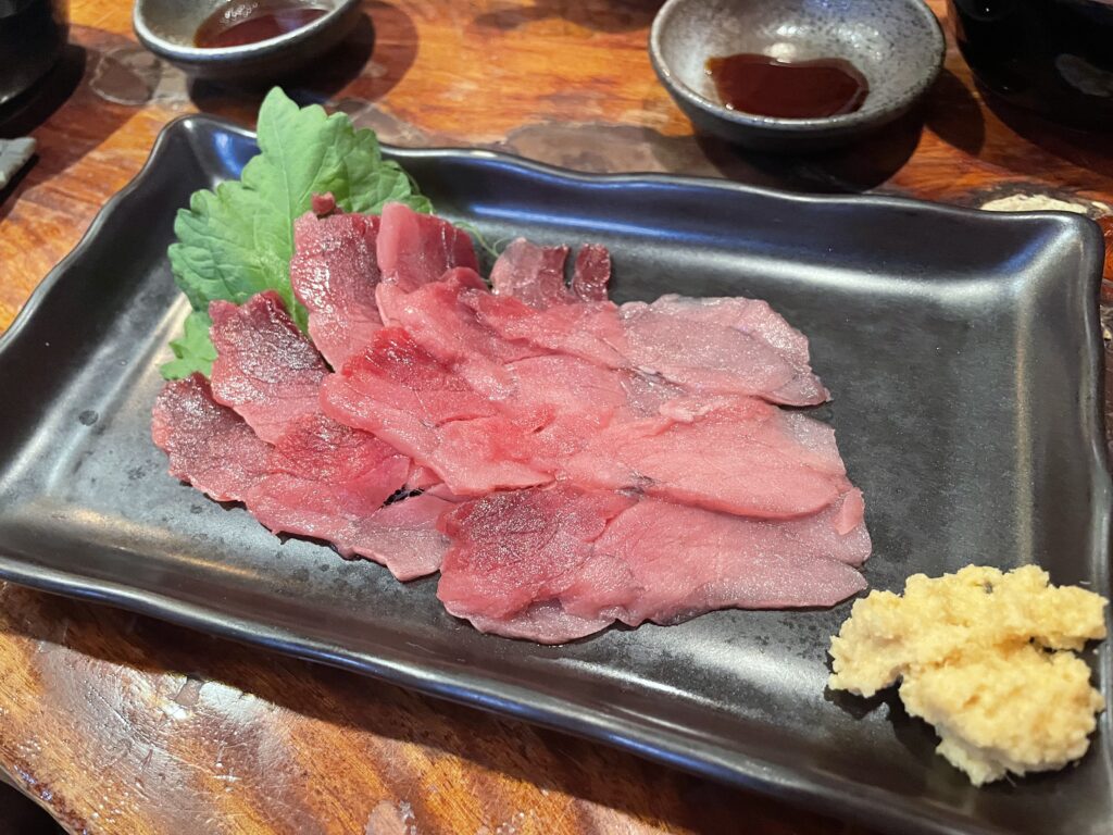 赤身は刺身でいただくことが多く、見た目はマグロのよう。食べてみると意外とさっぱりしていて、後味もそこまで重くありません。